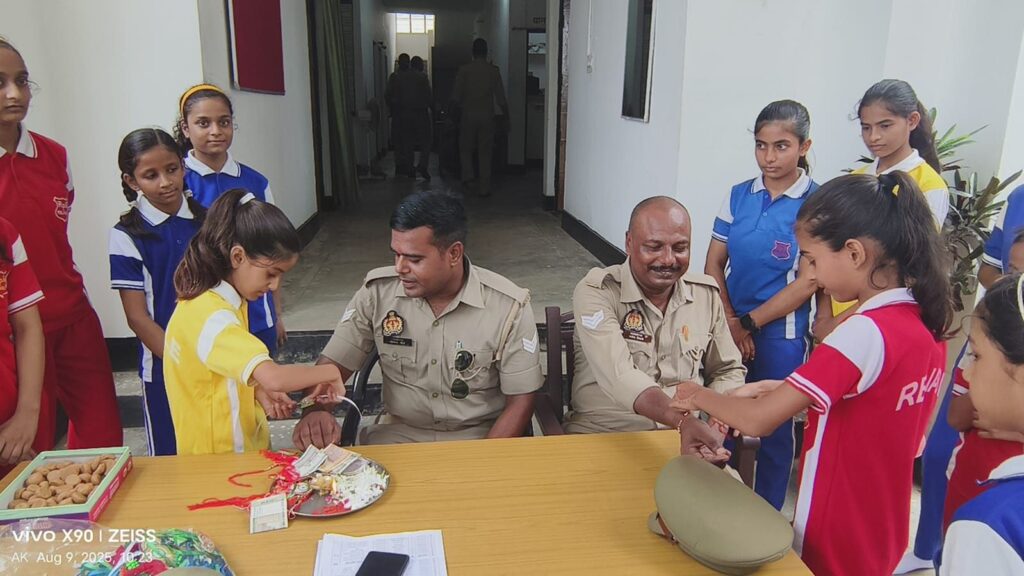 शनिवार को थाने पहुंचकर बच्चों ने अपने आने का उद्देश्य बताया तो पुलिसकर्मियों के चेहरे खुशी से खिल उठे। महिला पुलिसकर्मियों ने भी छोटे बच्चों को राखी बांधी और मिठाई खिलाकर प्रेम जताया।
