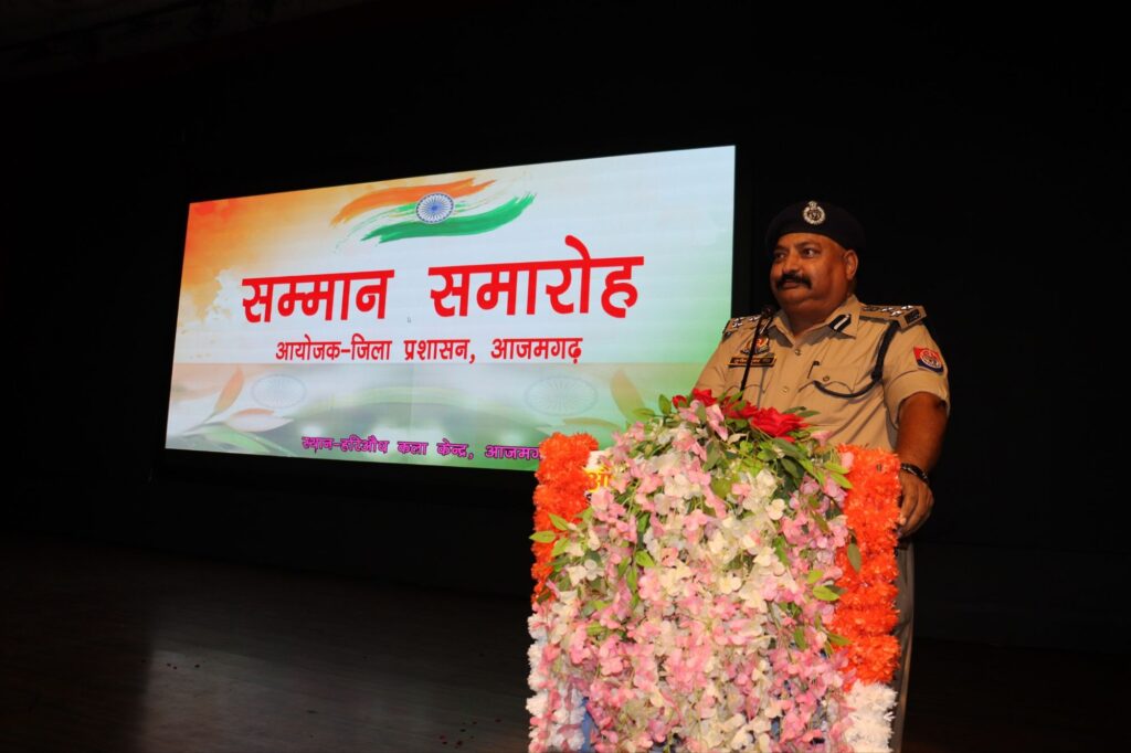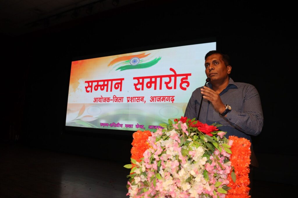 आजमगढ़ । नगर के हरिऔध कला केन्द्र में मण्डलायुक्त विवेक, डीआईजी सुनील कुमार सिंह, जिलाधिकारी रविन्द्र कुमार और वरिष्ठ पुलिस अधीक्षक हेमराज मीना की मौजूदगी में हर घर तिरंगा कार्यक्रम के तहत जिला प्रशासन ने एक भव्य सम्मान समारोह आयोजित किया। इसमें जनपद के सुदूर गाँवों से लेकर शहर तक, विभिन्न क्षेत्रों में उत्कृष्ट कार्य करने वाले अधिकारियों, कर्मचारियों और समाजसेवियों को सम्मानित किया गया।