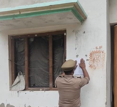 इसी क्रम में शनिवार को थानाध्यक्ष राजीव कुमार सिंह के निर्देश पर उपनिरीक्षक राजेन्द्र पटेल (चौकी प्रभारी ठेकमा), उपनिरीक्षक पुनित श्रीवास्तव एवं कांस्टेबल सुविन्द्र गुप्ता की टीम ने गांव में डुगडुगी पिटवाकर मुनादी करायी और नोटिस को आरोपी के घर, गांव के रास्तों, मंदिर व अन्य सार्वजनिक स्थानों पर चस्पा कराया।