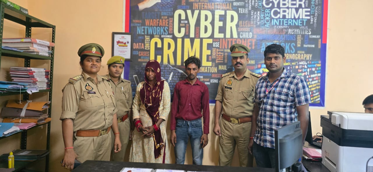 आज़मगढ़। वरिष्ठ पुलिस अधीक्षक आजमगढ़ हेमराज मीना के निर्देशन, अपर पुलिस अधीक्षक ग्रामीण चिराग जैन एवं क्षेत्राधिकारी सदर आस्था जायसवाल के पर्यवेक्षण में साइबर अपराध पर अंकुश के लिए चलाए जा रहे अभियान के तहत बड़ी सफलता मिली। गुरुवार को थाना साइबर क्राइम पुलिस ने अशोक नगर थाना बिल्हौर जनपद कानपुर नगर में किराए के मकान से एक युवक और एक युवती को गिरफ्तार किया। इनके कब्जे से 2 मोबाइल फोन, 2 सिम, 80 हजार रुपये नकद, 1 पासबुक और 2 आधार कार्ड बरामद हुए।